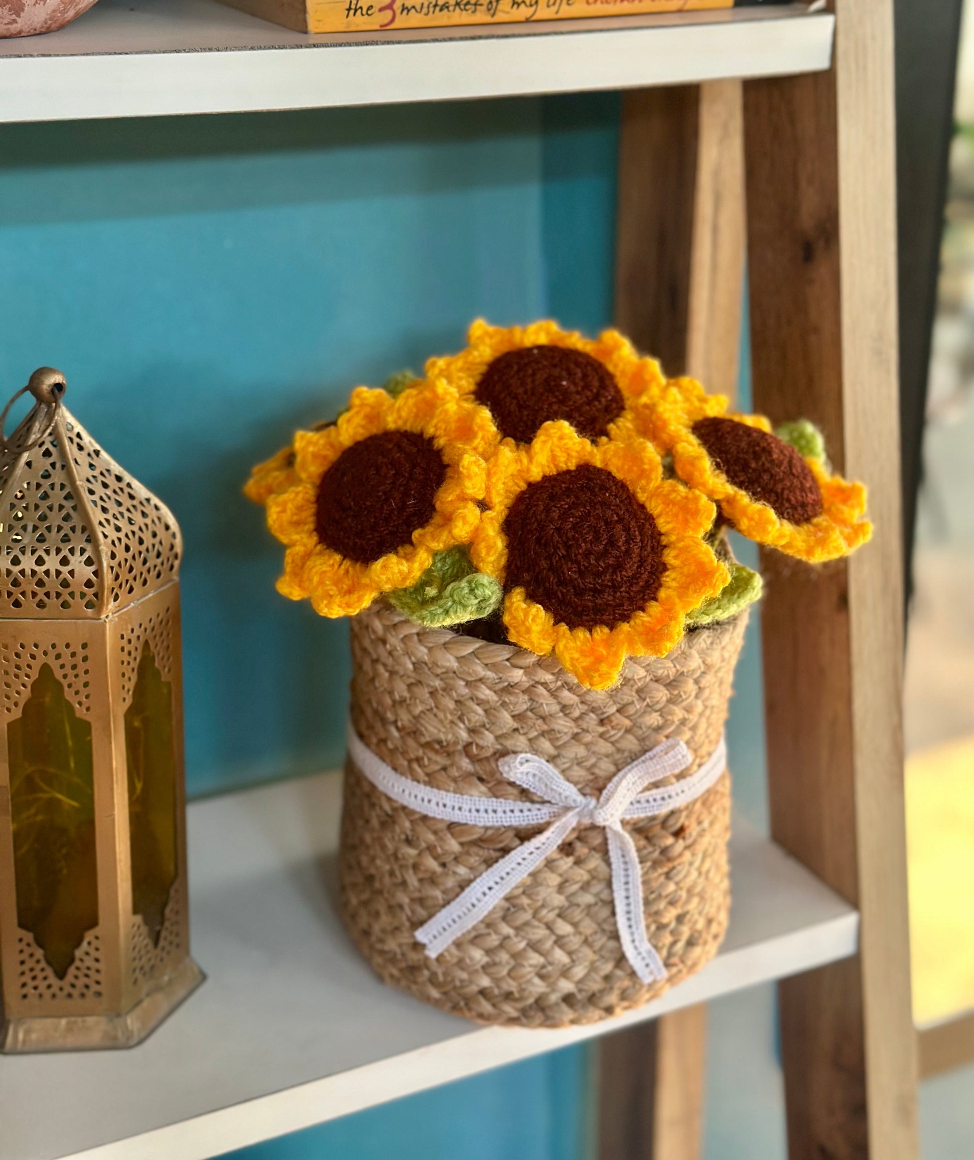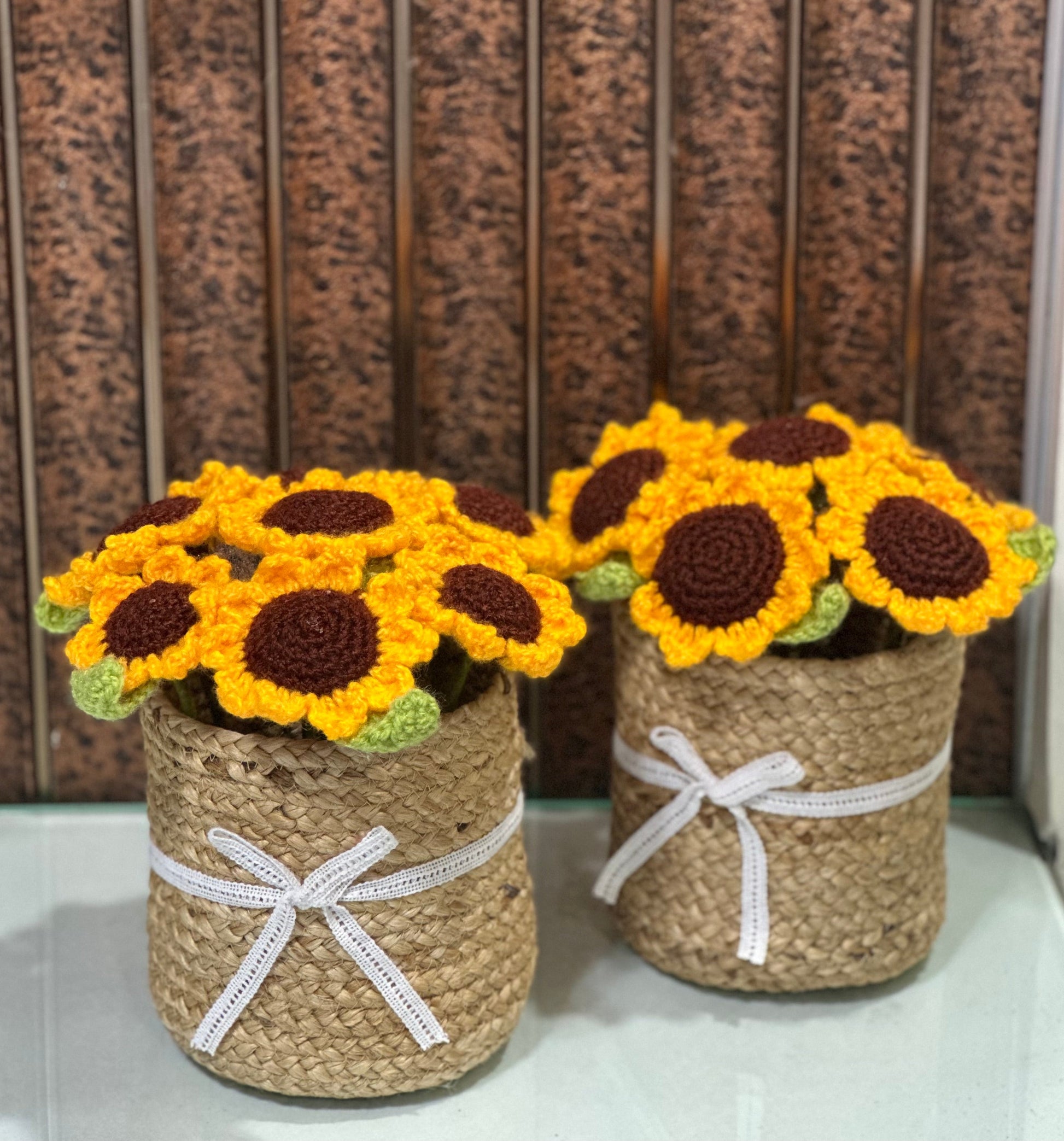 A little sunshine for your desk! Has 7-8 sunflowers in a basket, perfect for gifting or adding a touch of handmade warmth to your home.